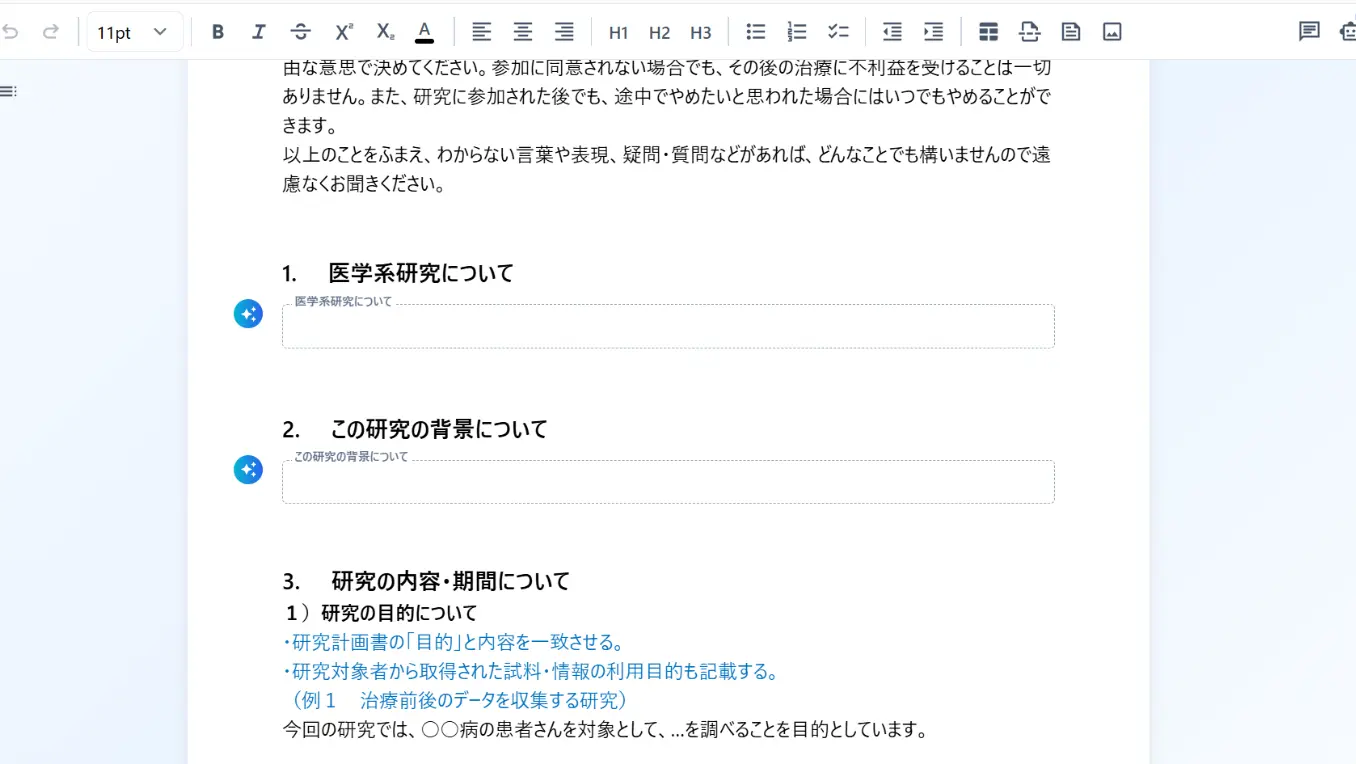A. 病院が公開している臨床研究計画書のテンプレートに対応しています。
