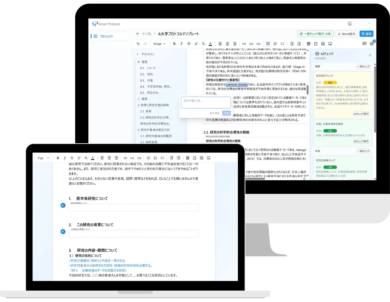 審査を通過をサポート、臨床研究計画をもっと効率的に。