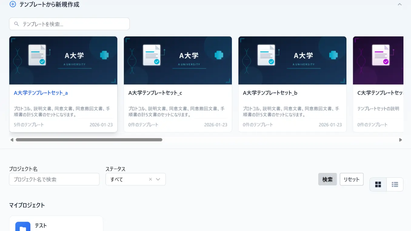 現在は一部中核病院のテンプレートから開始し、順次他の中核病院のテンプレートにも対応予定です。